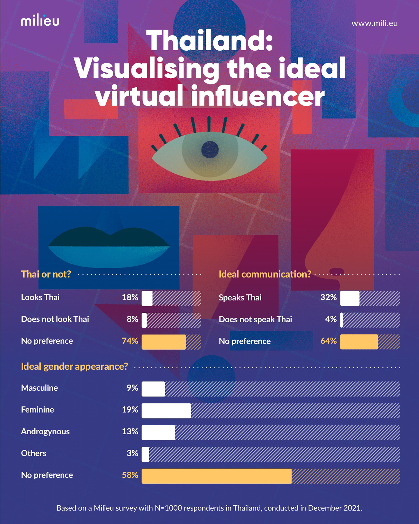 - Thais generally don’t have a preference, while Filipinos, Vietnamese, and Indonesians tend to prefer if virtual influencers look and speak local