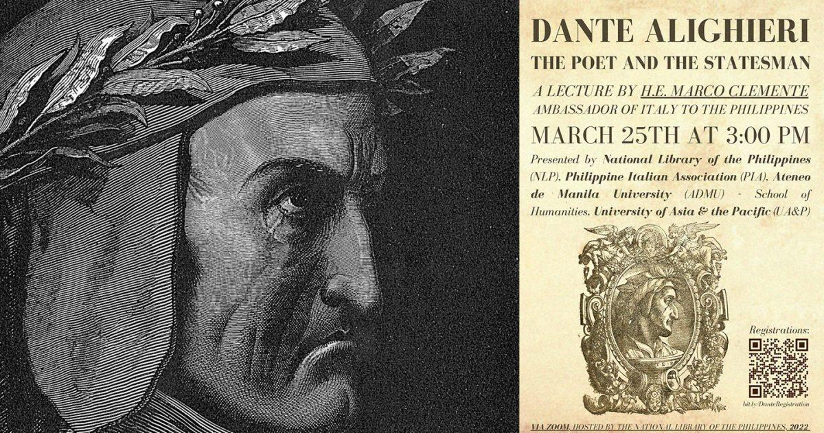 Events: The National Library of the Philippines, The Philippine Italian Association, Ateneo de Manila University, University of Asia and the Pacific present Dante: The Poet and the Statesman