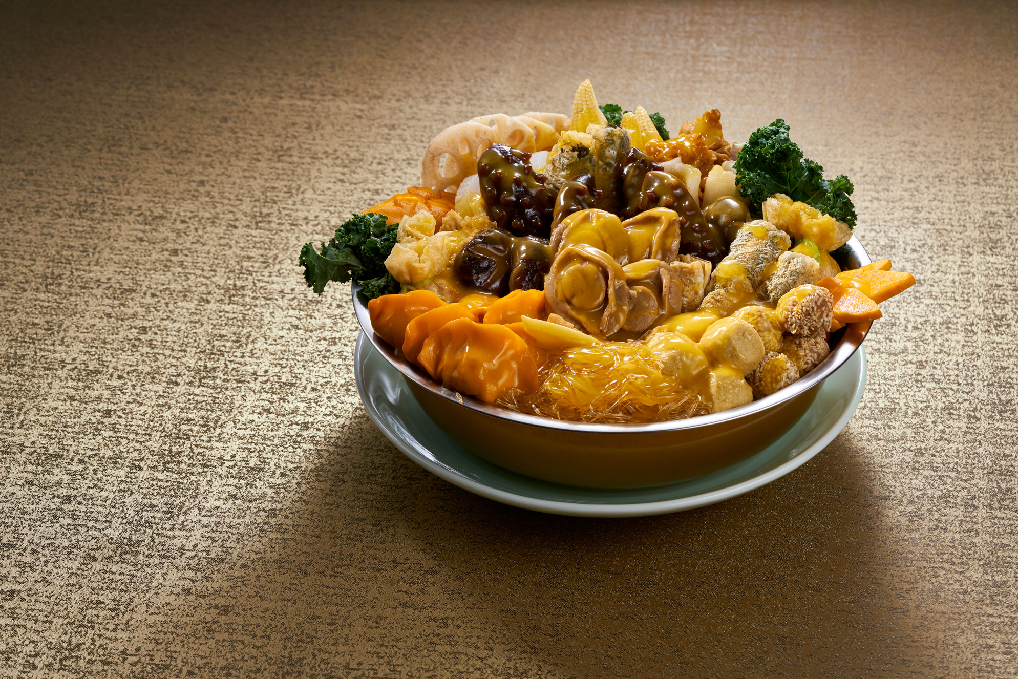 The last dish is truly a Chinese New Year menu item: the Royal Garden Supreme Poon Choi, created by Chef Ho Wai-shing from 16 auspicious ingredients, including braised abalone, fish maw, whole scallop and more.