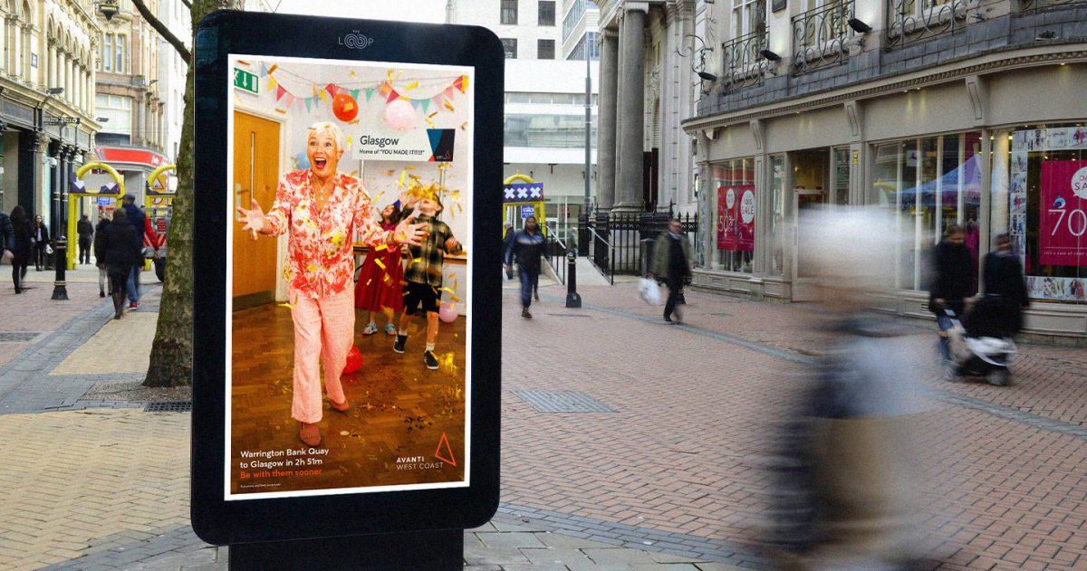 The campaign runs across out of home, social and audio, with the creative being adapted to work throughout Avanti West Coast’s many destinations across the UK. Dynamic OOH enables regionally targeted messages to be displayed in locations that Avanti West Coast can take you to, helping you reach your loved ones sooner – meaning people in Glasgow might see a version saying “Manchester. Home of…” along with details of the journey time between the cities, reinforcing the benefit and speed of traveling by train.