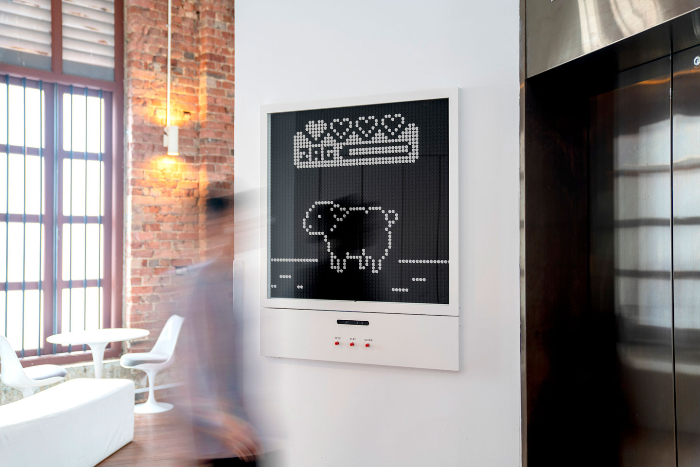 To give Dotty a tactile effect and closer to the look and feel of modern virtual pets, the team used Flip-dot display, an electromechanical dot matrix display technology commonly used for large outdoor signs and airports. Depth sensors have also been used to detect user proximity to trigger a response from Dotty.