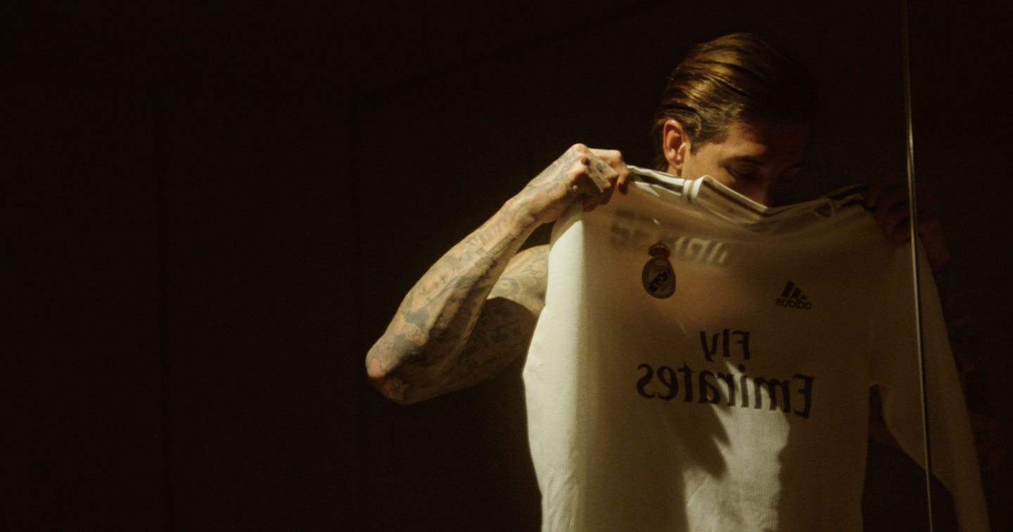 In the opening shot, Real Madrid star Sergio Ramos symbolically kisses his jersey before he puts it on. We also see legendary midfielder Luka Modrić in the dressing room picking up his shin pads and kissing them before the game. Printed on the shin pads are pictures of his family and Jesus.